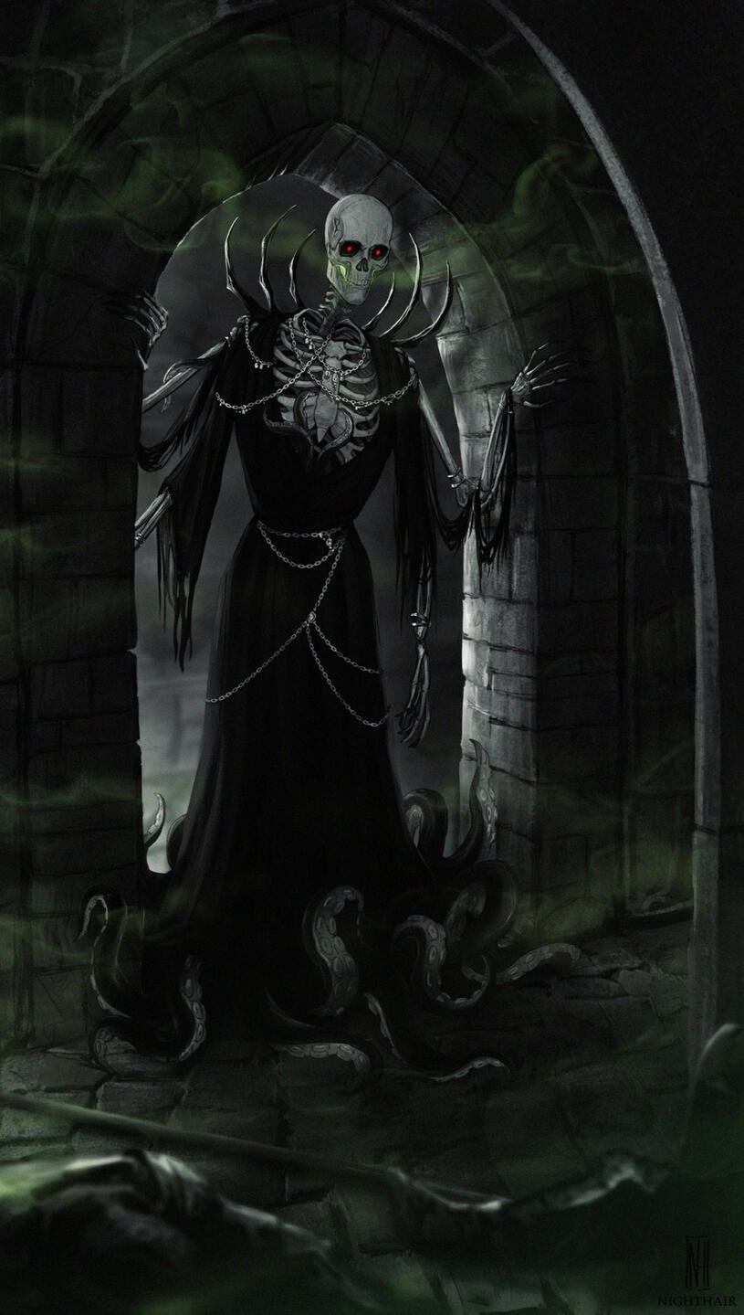 ❝ Born in 1022 DR, Alistair Reiter was a priest of Lathander in a small town of Del'Marlington. His youth was spent living in a body that strangely didn't feel like it belonged to him.Turns out, it didn't.Alistair Reiter was a man born when his mother was carrying a mysterious infection that was given to the fetus in utero. Inside his body, he carries a parasite from the Far Realm. That same parasite spread to his child he later had when he married the love of his life and settled down to have a family. The infection became genetic. Whatever deep horrors embedded itself in Alistair and his daughter's DNA festered.With his daughter's sudden passing, this turned Alistair Reiter to dark forces to bring her back to life. Such dark forces involved striking a pact with an evil entity. Using the power of necromancy, Alistair went wild, to attaching limbs to his own body in his experimentation of his new abilities to now bringing his daughter back. Bringing his child back backfired immensely and resulted in Alistair having to kill his daughter himself after she came back wrong.